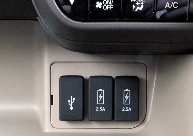 エアコンコントロールパネル下のUSB端子は3つありますが、右と真ん中は充電専用で2.5Aの出力に対応しています。