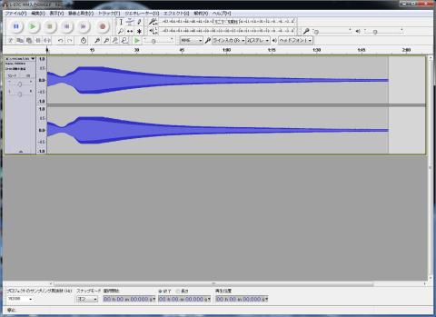 A図のファイルをB図の反転RIAA特性を通すと以下のWAVEになります。