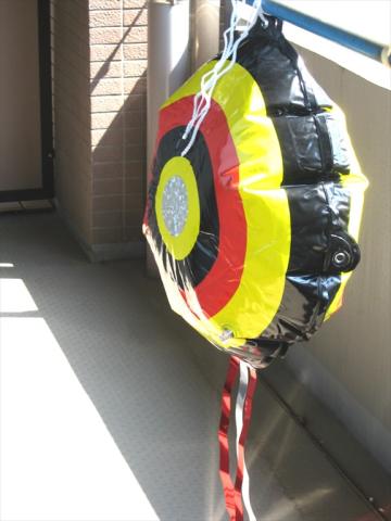 ポンプでも可能ですが、口で空気を入れて膨らませました 8割位に膨らませないと太陽光でパンクするとのこと。
