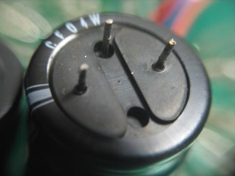 元は3本足のコンデンサーが付いていました こちらは古い40年前のコンデンサー