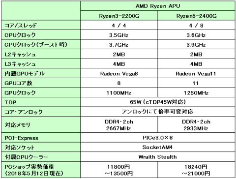 価格重視ならRyzen3-2200Gを、小型PCで最高のCPU/GPU性能を求めるならRyzen5-2400Gをチョイスするのが正解だろう。