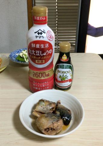 オリーブオイルと醤油を掛けます。