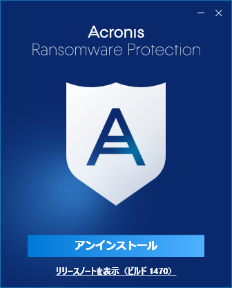 https://www.acronis.com/ja-jp/personal/free-data-protection/ から「AcronisProtectionSetup.exe」をダウンロードしてダブルクリックしてインストールをしようとしたがインストール出来ないでAcronis Ransomware Protectionが立ち上がってしまった。