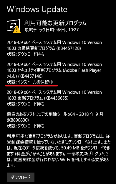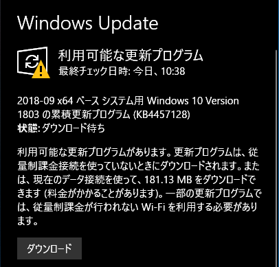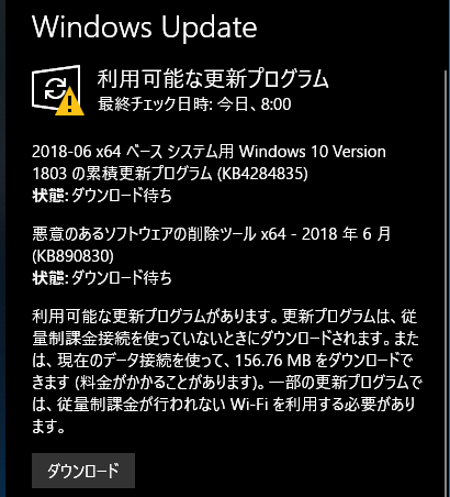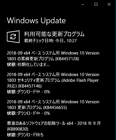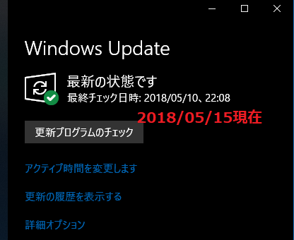 他の人のHomeバージョンではは、2018/05/25に「KB4100403」が来てるらしいが・・・