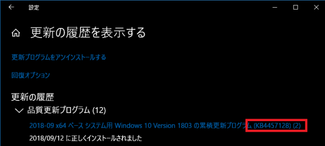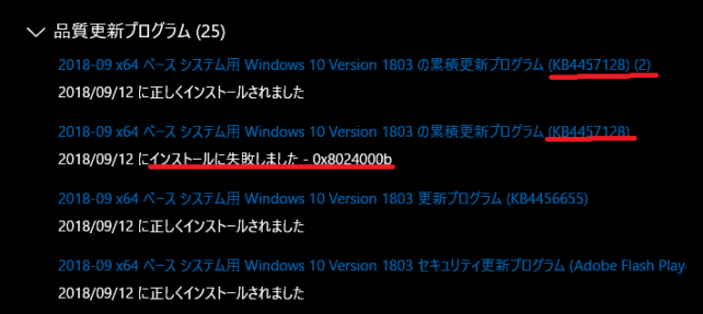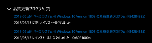 4. 累積のKB4284835は一度失敗している。