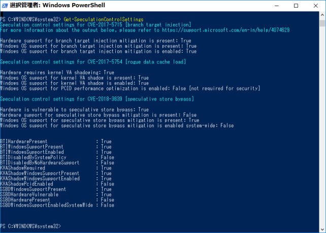 PS> Get-SpeculationControlSettings