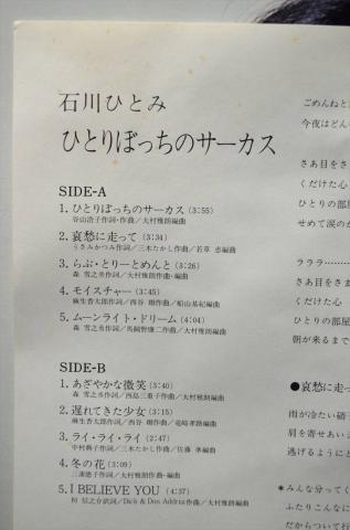 LPレコード 石川ひとみ 「ひとりぼっちのサーカス」