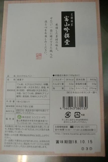 北陸味庄 富山吟選堂の 白えびせんべい をお土産としていただきました