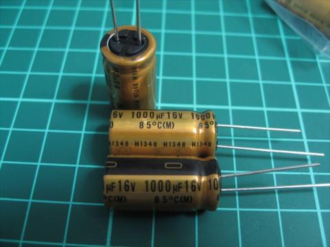 耐圧電圧が最低でも25Vからなんですね しかも大きい...もともと付いていたのは1000MF 10Vでしたので25Vでは高さが納まらないし、秋月では2個までの限定購入とされます そこで25V, 50V各2個
