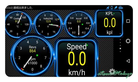 本来 OBD IIはコンピューター(ECU)から車両情報を取得し故障診断の為に使う事が目的だと思いますが、私は見栄えだけ(車両標準のメーター以外にメーター表示があるとカッコいい?)を考えての利用です(^^;