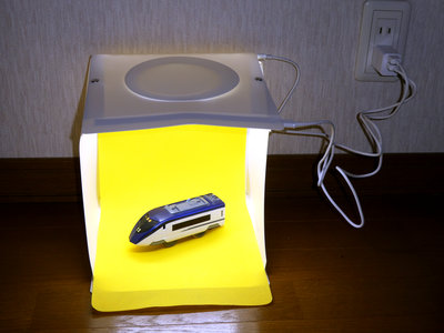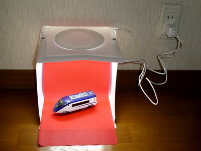 プラレール本体側面が白なので、白の背景布よりも色が鮮やかに見えますね。
