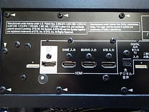 入力は,HDMI×3と光デジタルです.アナログ入力がないのはちょっと残念ですが,光デジタルでTVと接続します.