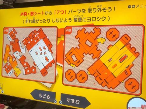 画面を見ながら段ボールを折ったり、組み合わせたりして組み立てていきます。