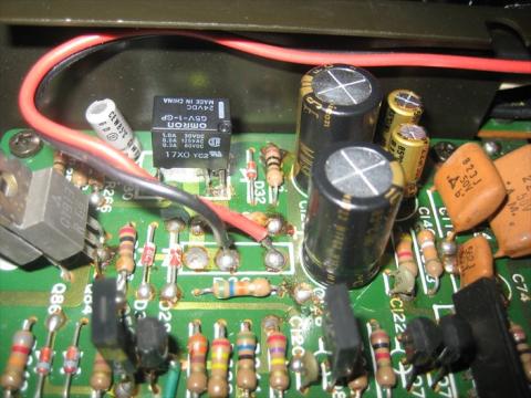 新しいリレーの脚にリード線を足して(6本)基板から浮きますがハンダが剥がれないようにハンダ付けします 形は小さいリレーですが旧リレーと電気性能と脚位置も互換があります。
