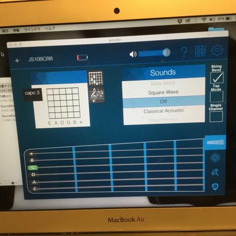音が出ないままですが、アプリ「GuitarPro」との接続を