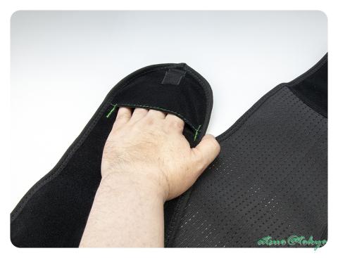 面ファスナー部分が長いためにお腹の前で重なっている面積が大きく、長時間使うと蒸れてきてしまいます。