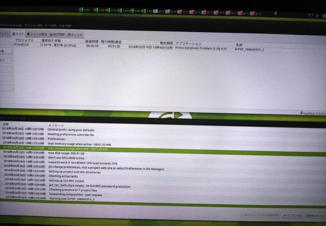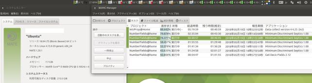 演算中の図 何故かPrimeGridではなくNumberFields@homeだけど