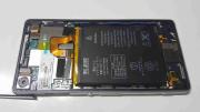 粘着テープを緩めて、吸盤を使って裏蓋を引っ張り、ギターピックみたいな工具を