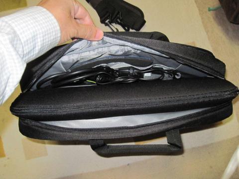 17.3インチノートパソコンだけでなく、ACアダプターと電源ケーブル、マウスも十分に入ります。