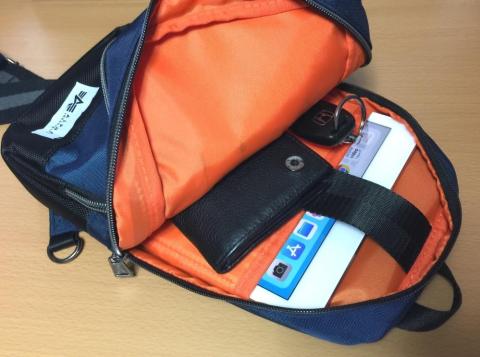 これら全部ポケットに入れるのは重たくなりますので、ボディバッグは重宝します。