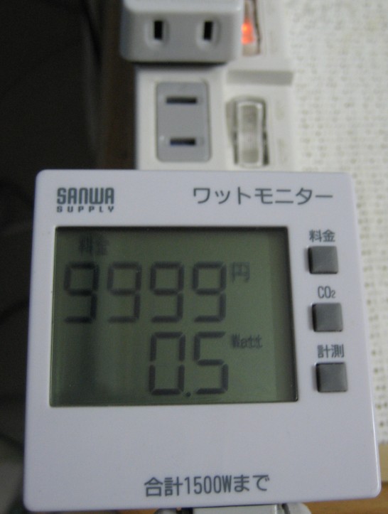節電格言(?)で「消費電力が小さくても、ずっとONの機器は意外と電気食い」というのがあって、プラグが挿さっていないのに個別スイッチがONのままというのがダメな気がします。