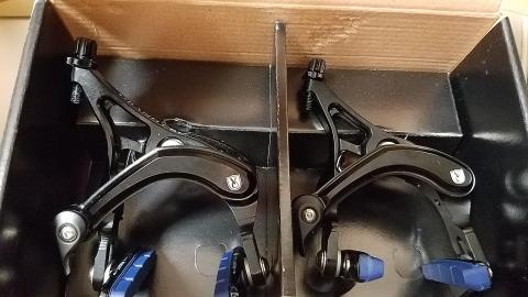 付属のシューは、、リムへの食い付きはあまり良くないですが、私はフラバなんで握れば握るほど制動力が増しますので、問題ありません。下り道で時速30㎞からブレーキングしてみましたが、簡単に後輪ロックしました。キャリパーが撚れる感じはありません。「ジョリジョリ」とアスファルトがタイヤ削ってる音がしましたが、ブレーキは一切鳴かないので、そういう方向へ振ったシューなのかもしれません。