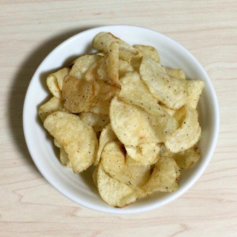 ペッパーの辛味がきいた堅揚げポテトチップス です。