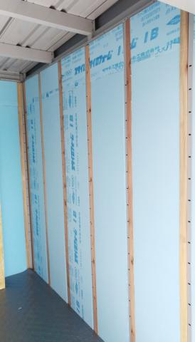 垂木を付けた後は、保管庫内の断熱材を張っていきます!