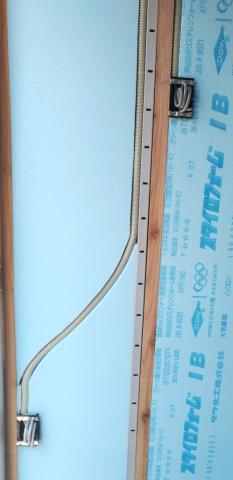 右下のツッパリ棒は壁を押さえているわけではなくて、ただ単に作業道具をぶら下げているだけです。脚立使わないと届かない場所なので、登ったり下りたりが面倒だったのでぇ~。(・∀・;)