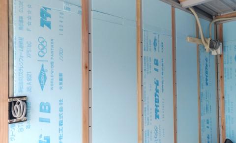 断熱材は色々あるのですが、胴縁を作らないのでガラスウールは使わずにスタイロフォームと言うポリスチレン樹脂で出来たものを使います。