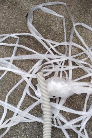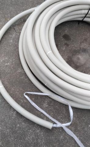 PF管にビニール紐を通しました。このビニール線にVVFを括り付けて、反対側まで引っ張ります。