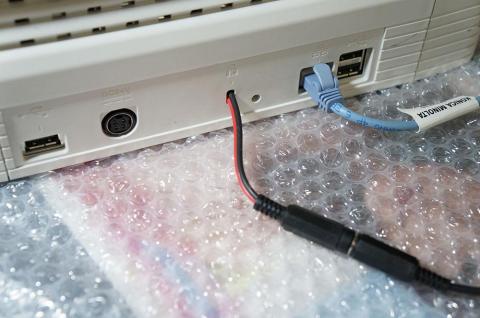 (電源のDC24Vの線をセキュリティキーの穴から引き出して、一般的なDCコネクタに変換しています。)