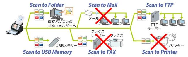 スキャンしたデータをその後ネットワークを経由してどうするかによって6つの機能があります。
