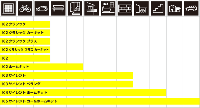 グラフ上部のピクトグラムは、左から、網戸,自転車,普通乗用車,庭やテラスの家具,外階段,外壁や家回り,浴室,ブロック塀,カーポート,会談,家の外壁,中型乗用車のイメージのようです。