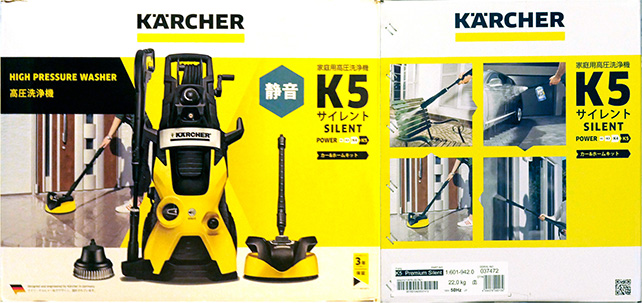 ということで、家庭用製品のラインアップの中で、ブロック塀の洗浄ができるのは、K3サイレント以上ということなので、ラインアップの中で最もパフォーマンスの高い(高圧で水が噴出する)ケルヒャー K5 サイレント カー&ホームキットにしました。