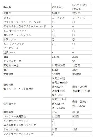 これまでのFluffy DC74 motorheadとCYCLONE V10 FLUFFYとの比較をして見ました。