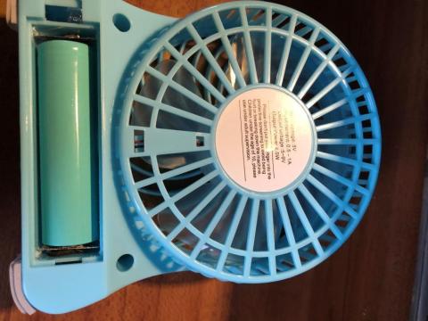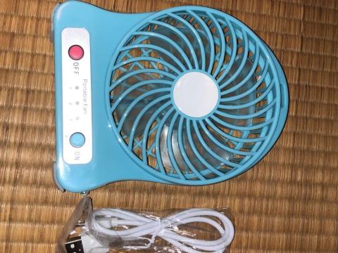 この充電池を入れることで、このUSB扇風機はUSB給電で動作するのはもちろん、充電池で動作するようになりました。ちなみにUSBケーブルをつなぐと充電池に充電することもできます。