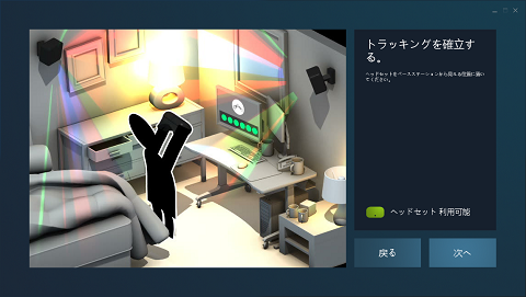 ヘッドセットを机に置いた状態で床面との高さ設定です。なんセンチかを計って入力して次に進むと・・・
