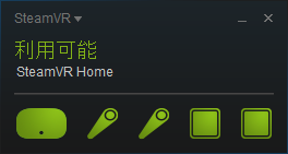 セットアップについてはHTCサイトよりSteamのアプリをダウンロードする必要があります。(登録もした方が後々便利なのでシリアルNoの登録も済ましましょう)まずはヘッドセットとベースステーションの電源を入れてインストールされたアプリ「SteamVR」を起動するとコントローラーのペアリングが済んでいないので「使用不可」と表示されますのでペアリングを先に行います。(画像はペアリング完了したものなので利用可能となっています。コントローラーの電源落としているのでコントローラー2つは暗くなっている状態です)