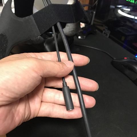 と言うことでヘッドセットには1本のケーブルで繋がるだけになります。シールドされた5φ程度のケーブルです。ちょっと固め。