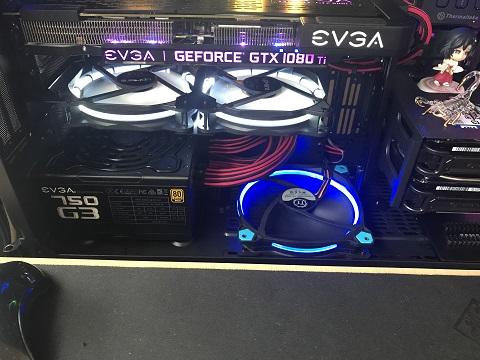 下にあるブルーなファンはケース純正のフロントの奴を余らしてたのでより吸気の為付けてみた。