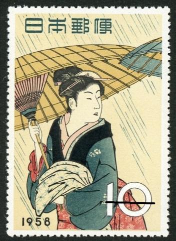 日本記念切手 切手趣味週間 1958年 雨中湯帰り(鳥居清長)