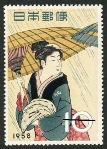 日本記念切手 切手趣味週間 1958年 雨中湯帰り(鳥居清長)