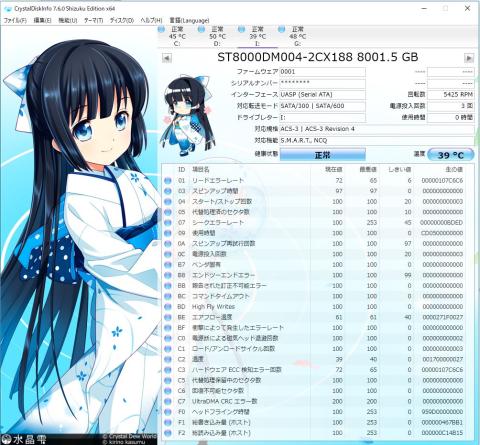 採用しているハードディスクはSEAGATEの「ST8000DM004」でした。