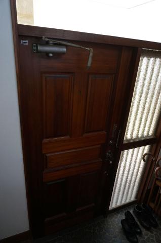 まずは古いクローザーの取り外し。40年ものなのでキタナイ。ただ思ったよりネジがすんなりあいたのは、数年前のリフォームの時一度鍵類交換の為ドアを外しているためか。