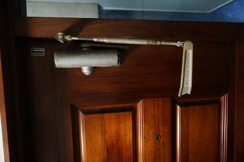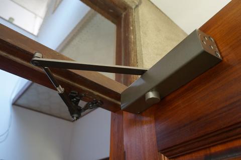 ドアの上のアレが壊れた!!というか分厚い金属が割れるとは…さすが築40年。