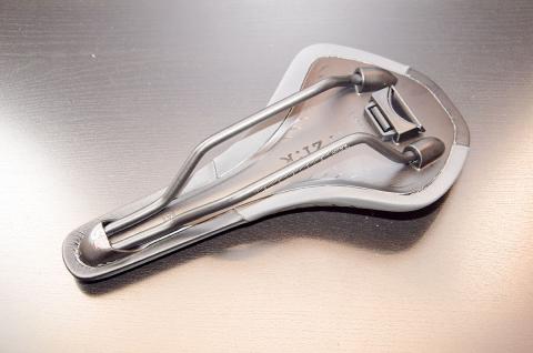 サドルの背面も真っ黒になっていて格好いいですね。しかし、カーボンなどの軽量素材は使われておらず、レールも金属製のものが使われています。