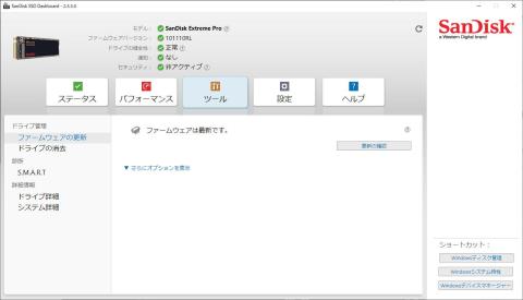 管理ソフト「サンディスクSSDダッシュボード」で、
