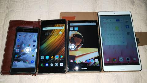 左からXperia Z5(5.2インチ)PHAB2 Pro (6.4インチ)SH-05G(7インチ)dtab(8.4インチ)