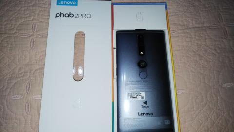 箱を開けたところ、AR技術を楽しむための「RGBカメラ」「深度カメラ」「モーショントラッキングカメラ」と3つのカメラを搭載してることをアピールするためにカメラ部分が見えるような凝ったパッケージになっていました。背面にあるTangoのエンブレムが今となっては悲しですね。あと背面には指紋認証用のセンサーも搭載しています。